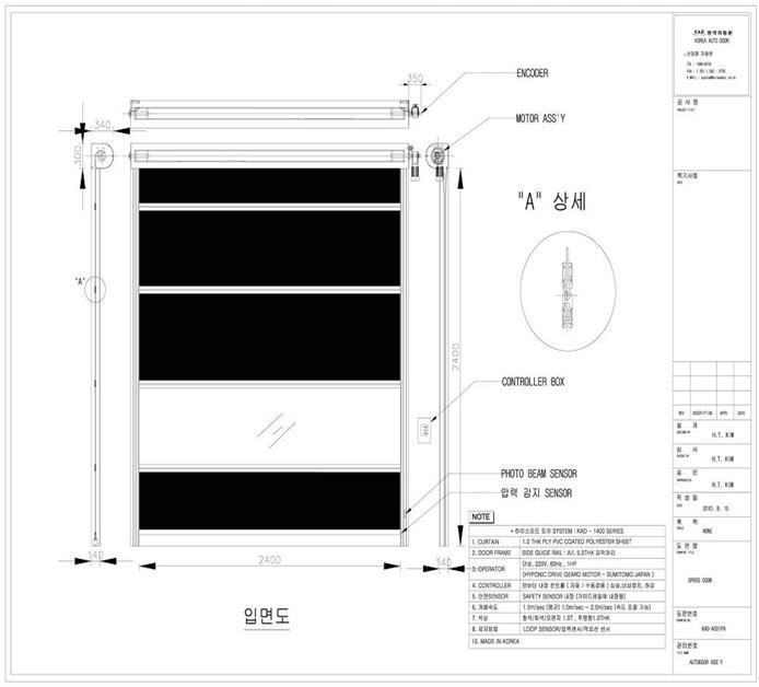 자동문 스피드도어도면을 첨부하여 보내드립니다. 에어커튼연계로 클린룸이나 식품공