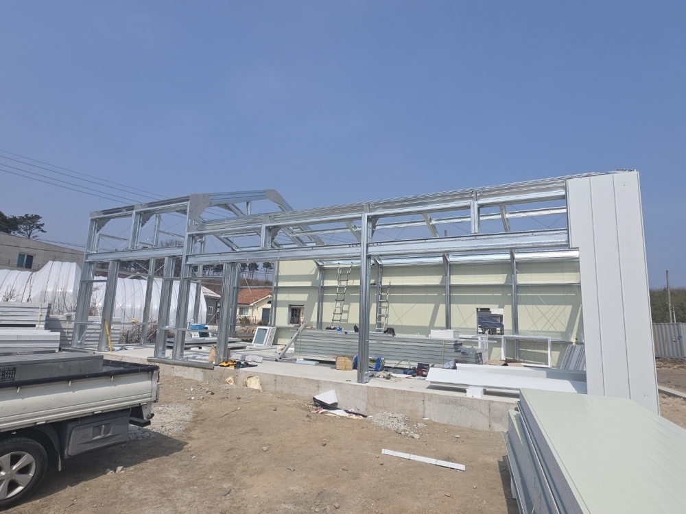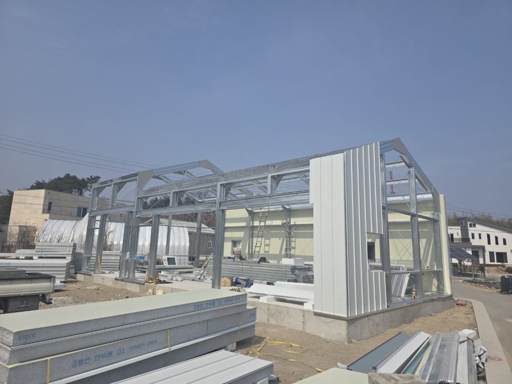 조립식경량철골 heb leb 징크준불연판넬 백색 창호도아